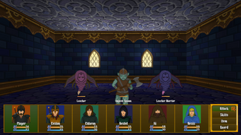 - Turn-based battle system with animated enemies.